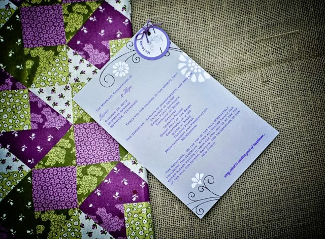 The ceremony took place on the dock with friends and family watching from the bank. Guests sat on hay bales covered with burlap or quilts.