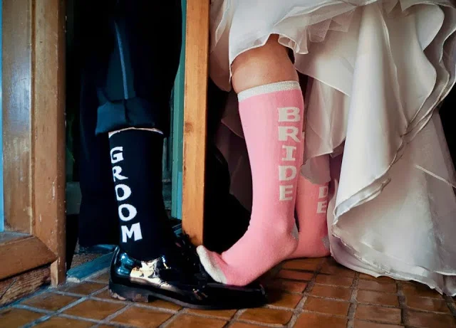 Since the couple didn't want to do a first look, they each stood on either side of the door and held hands for a moment which resulted in this adorable shot.