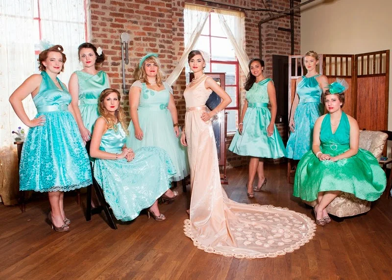 Each bridesmaid had a different style of dress and a different hair accessory.
