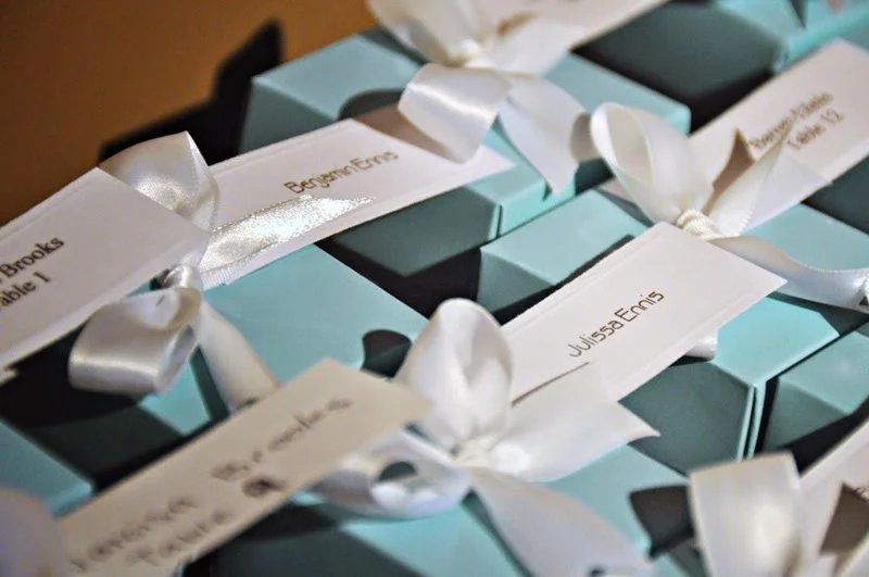 Doubling as both favors and escort cards, handmade truffles of either chocolate and green tea or dark chocolate and lavender were placed for guests.