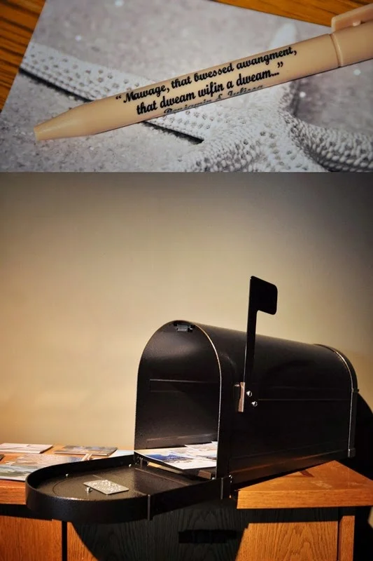 Instead of a traditional guest book, guests signed postcards which the "mailed" to the bride and groom.