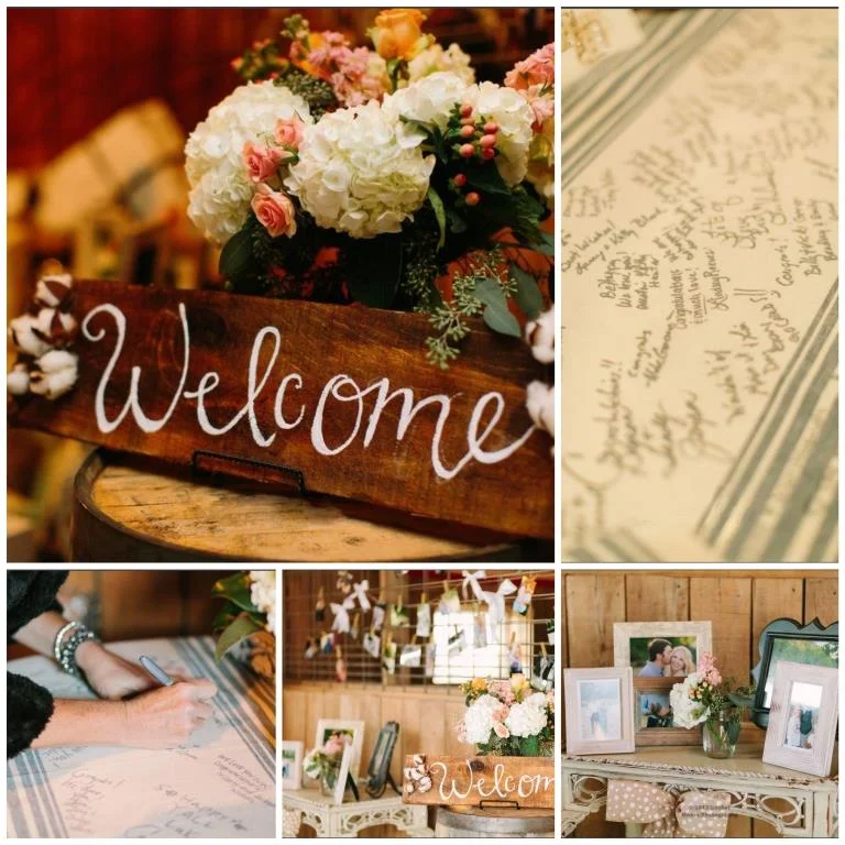 Upon entering the barn, guests were greeted with a warm "welcome" and the tablecloth that was the guest book.