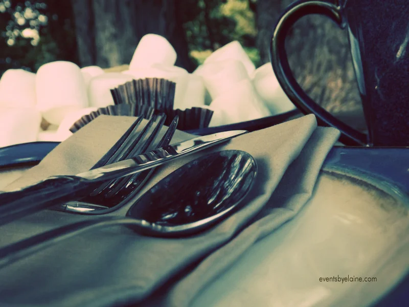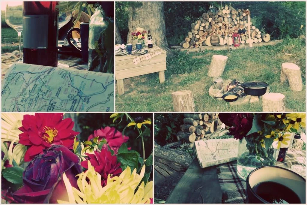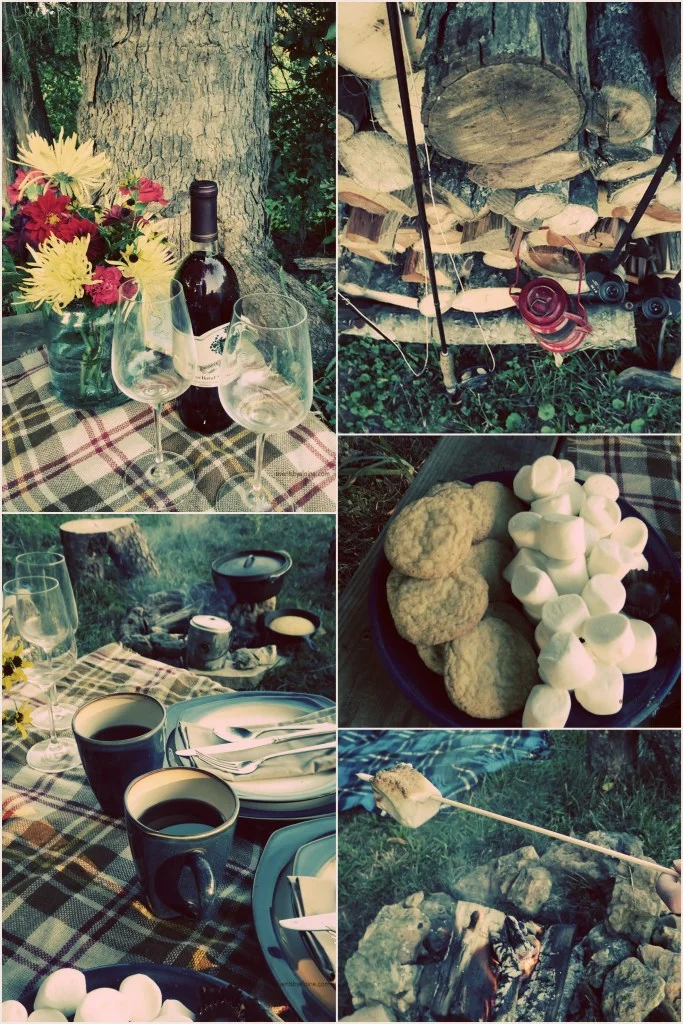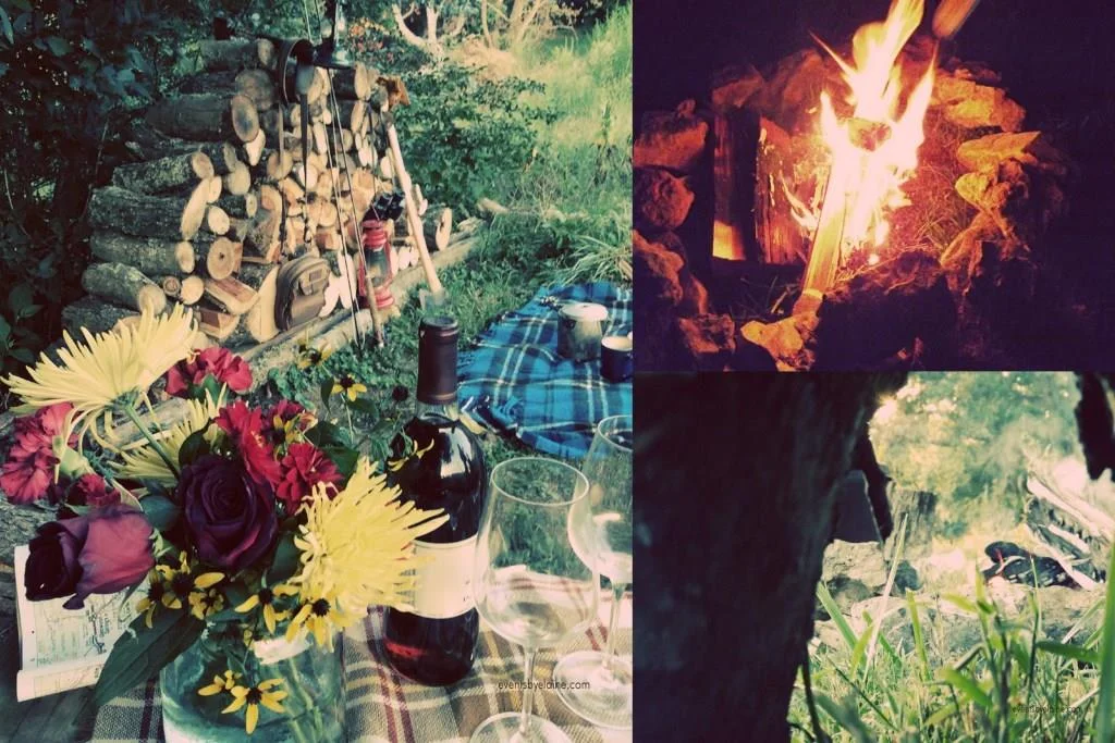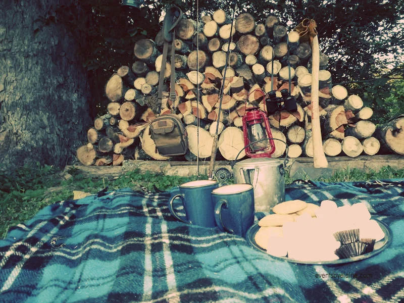 The weather has turned cooler and fall is everywhere. I thought it would be fun to put together a campfire styled shoot with an Americana red and blue color scheme. A stack of firewood makes the perfect background to our charming picnic.
