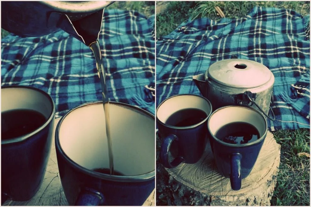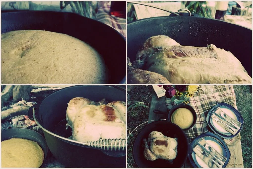 Of course what is a campfire without marshmallows? Some simple food of roast chicken and cornbread in cast iron skillets and of course some coffee make a perfect meal.