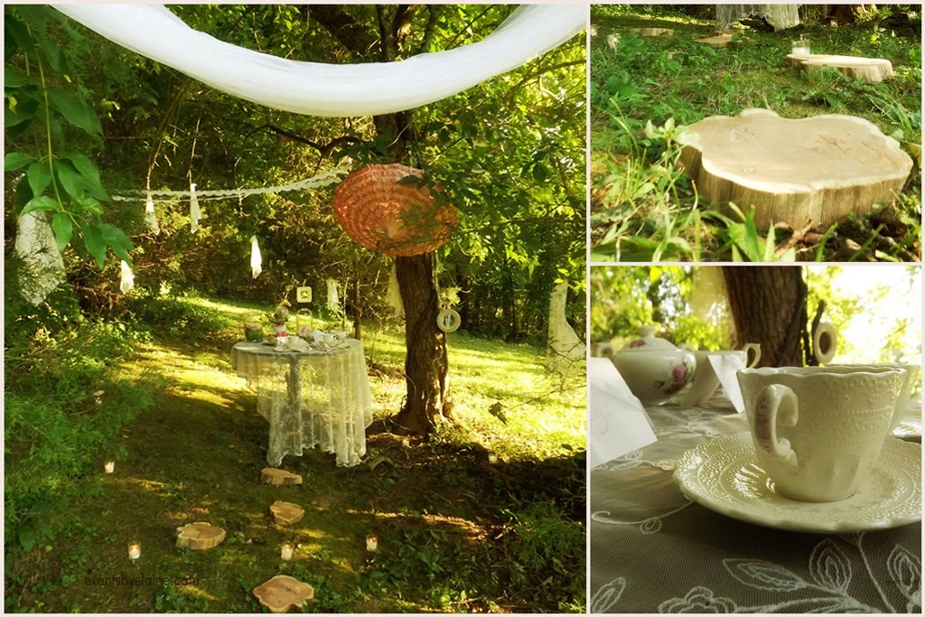 As a little girl walking through the woods, I would always imagine stumbling upon a hidden glade and find a tea party for the fairies. So while I never managed to find one, I thought I would create a simple styled shoot of tea party in the woods. I set up a little tablescape and grabbed some photos with the ipad.