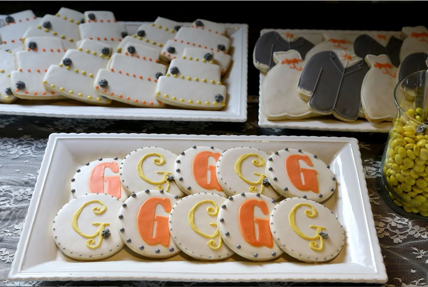 Guests enjoyed an inspired southern menu with shrimp and grits, fried green tomato crostini, Jack Daniels marinated beef and honey glazed ham with sweet potato biscuits. In addition to wedding cake, there were cookies for the children and mini blackberry and peach cobblers with ice cream.